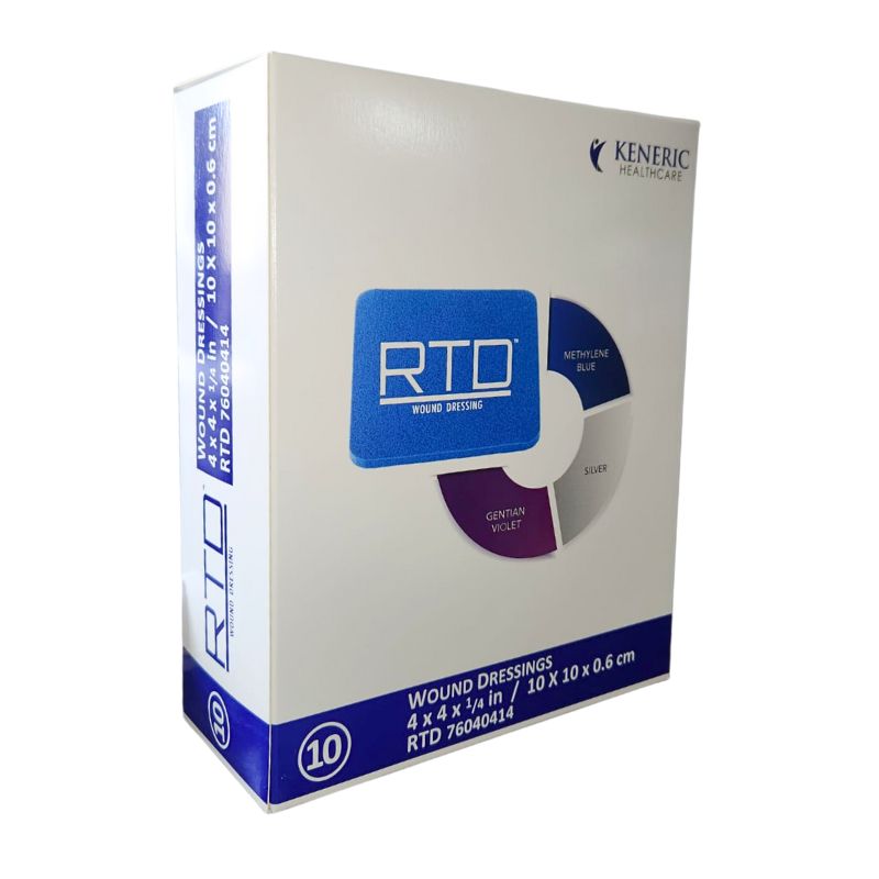El apósito para heridas RTD está hecho de espuma de poliuretano/poliéter, azul de metileno (hasta 0,25 mg/g), violeta de genciana (hasta 0,25 mg/g) y plata (hasta 7 mg/g).