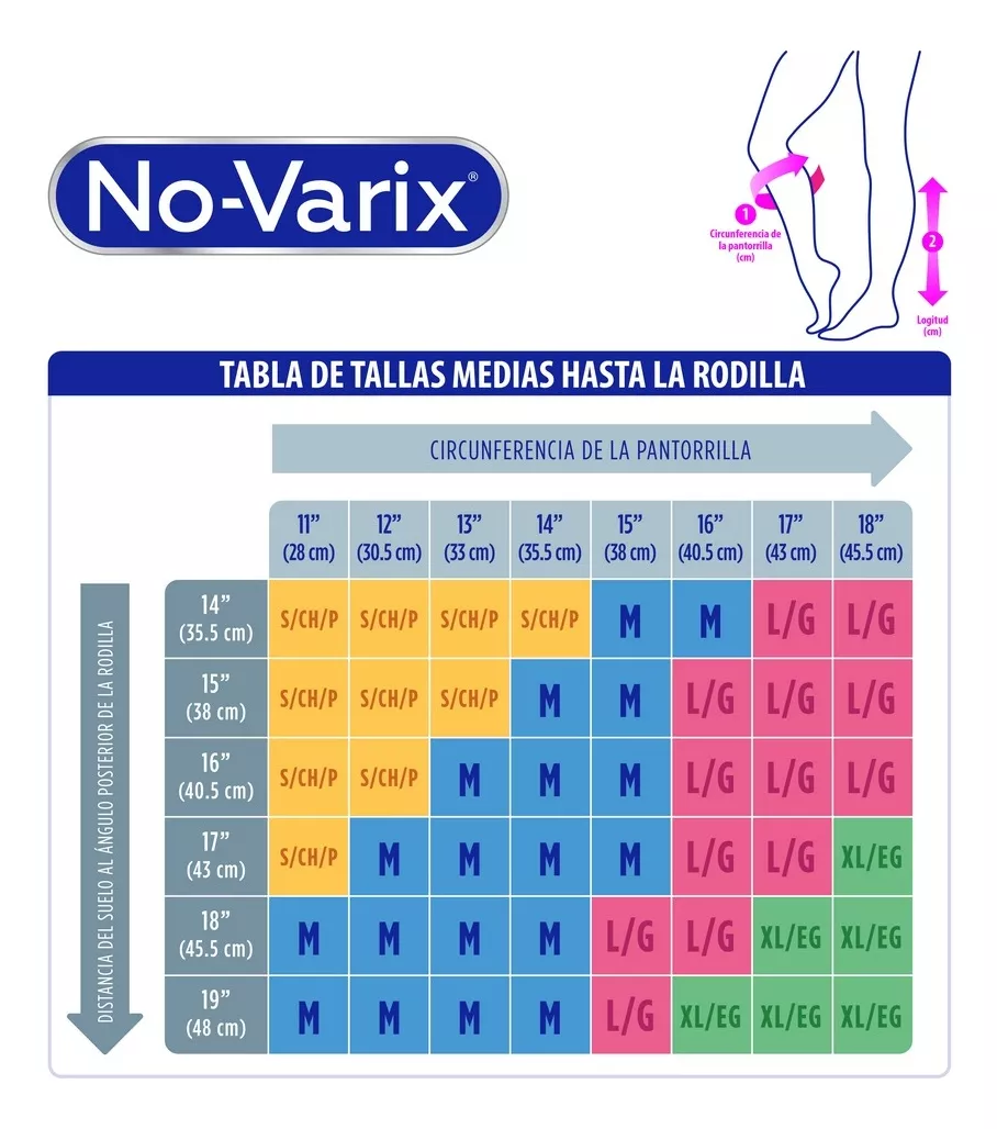 - Las medias de mediana compresión 15-20 mmHg No-Varix son recomendadas como complemento para el tratamiento de la Insuficiencia Venosa crónica, también son ideales para mejorar la circulación y aliviar síntomas en las piernas como: pesadez, dolor, inflamación y calambres.