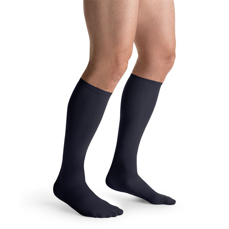 JOBST® For Men son calcetines pensados para aquellas personas exigentes que acostumbran a usar un estilo formal. Su diseño elegante, cómodo y altamente transparente hará que solo tú sepas que llevas una media con beneficios médicos.