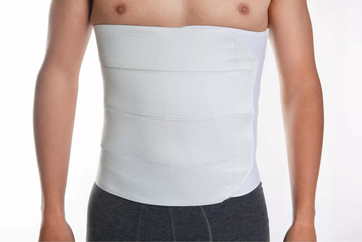 Faja de 4 bandas fabricada en elástico, con malla de algodón en su cara interna, de aproximadamente 30 cm permanece en contacto con la piel, cubre la parte anterior del abdomen proporcionando mayor compresión y protección a la herida