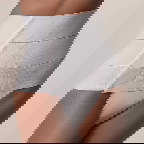 Faja de 4 bandas fabricada en elástico, con malla de algodón en su cara interna, de aproximadamente 30 cm permanece en contacto con la piel, cubre la parte anterior del abdomen proporcionando mayor compresión y protección a la herida.