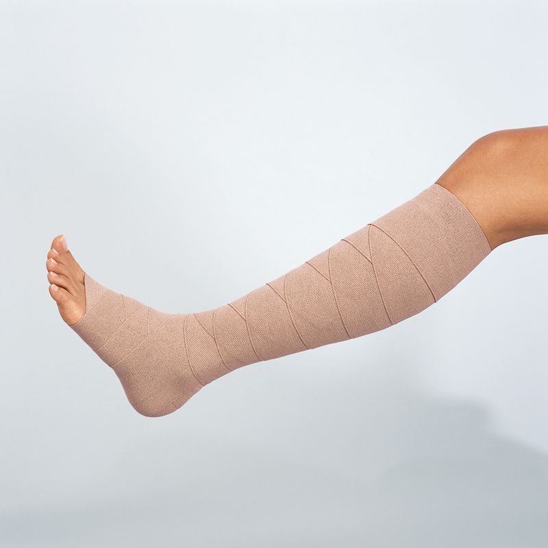 JOBST COMPRILAN® es un vendaje de corto estiramiento, que funciona a partir del principiode aplicar poca presión en el momento en que el músculo descansa o no está activo. Cuando el músculo se activa, como el de la pantorrilla al caminar, el vendaje de poca elasticidad aplica una resistencia sobre el músculo que también se conoce con el nombre de presión de trabajo.