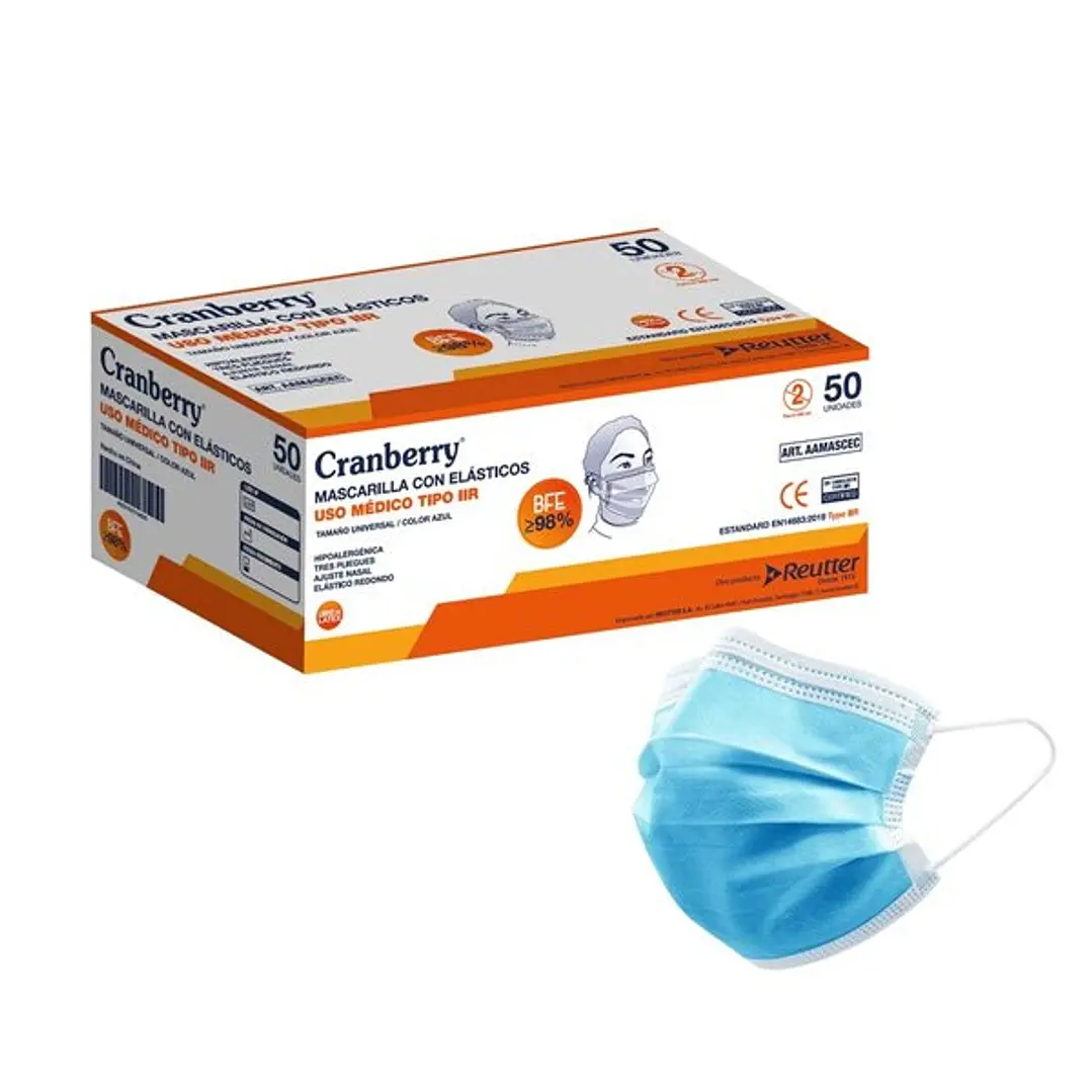 Mascarilla de 3 Pliegues – 50 unidades Cranberry