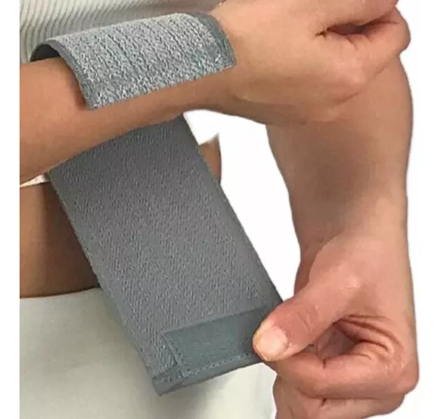 Soporte de muñeca ambidiestra, confeccionada en elástico afelpado libre de látex, con cierre de contacto.