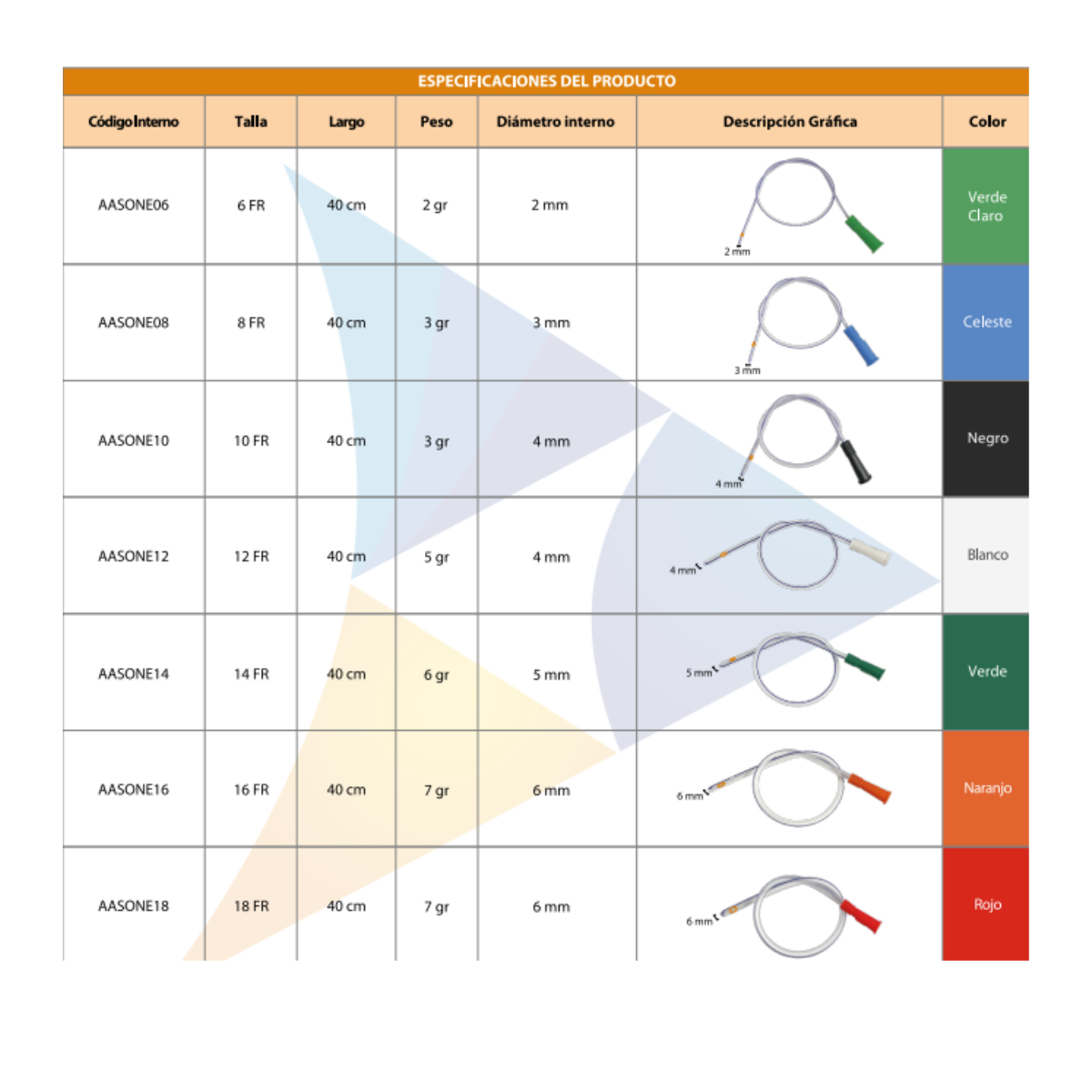 | Número | 8 FR, 10 FR, 12 FR, 14 FR, 16 FR, 18 FR |